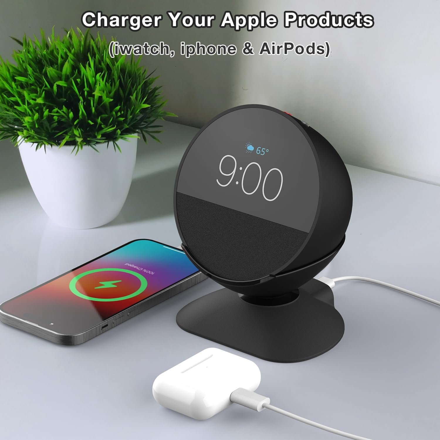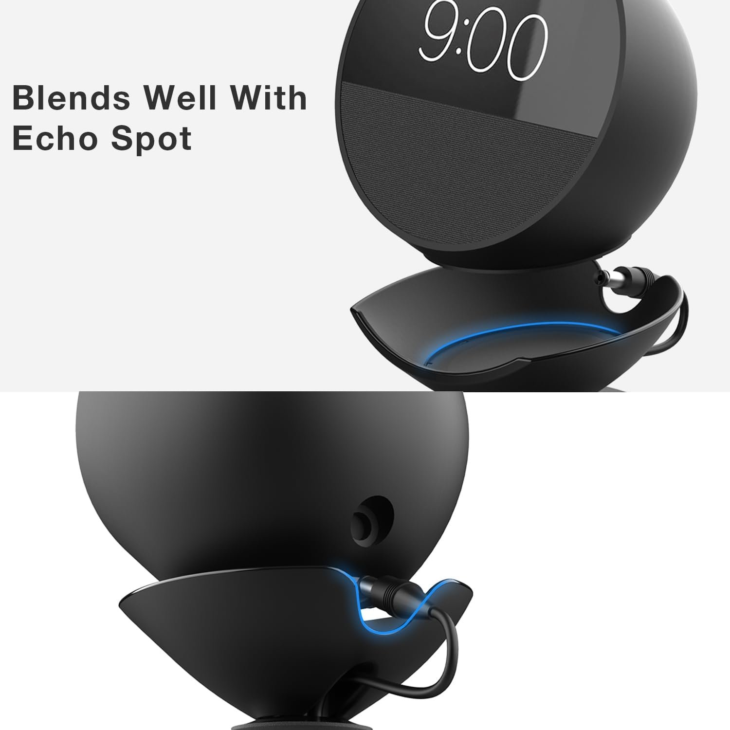 - Seamless Aesthetics: The Adjustable Charging Stand is designed to blend seamlessly with the device, ensuring it looks like an intentional part of the Echo Spot, not a bulky add-on.3