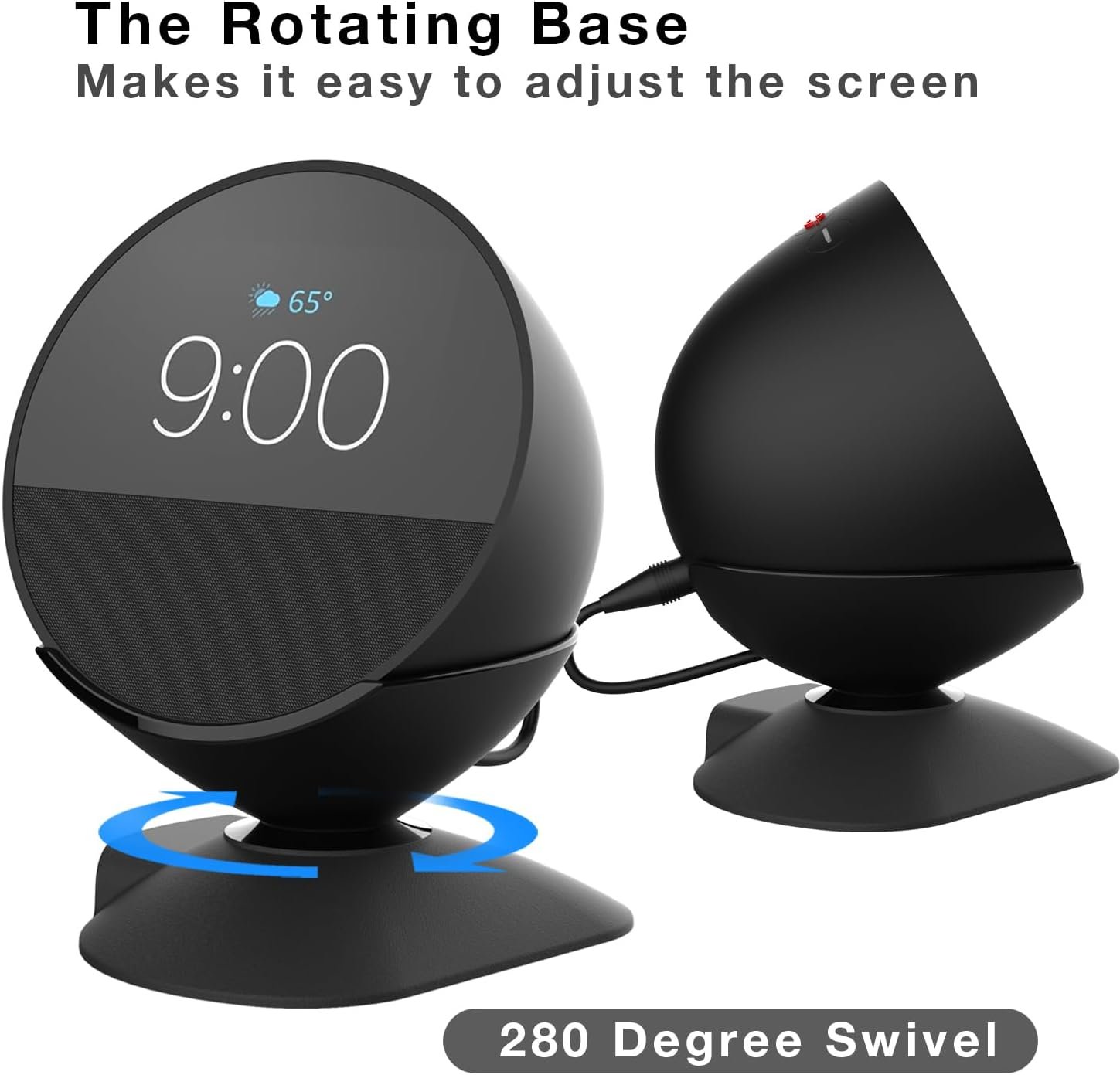 - NON-SLIP BASE: The stand features 4 rubber feet underneath to hold it firm when you rotate the Echo Spot. This non-slip base is vital, providing stability on a variety of surfaces and preventing accidental slips or movements when interacting with the touchscreen or rotating the device.