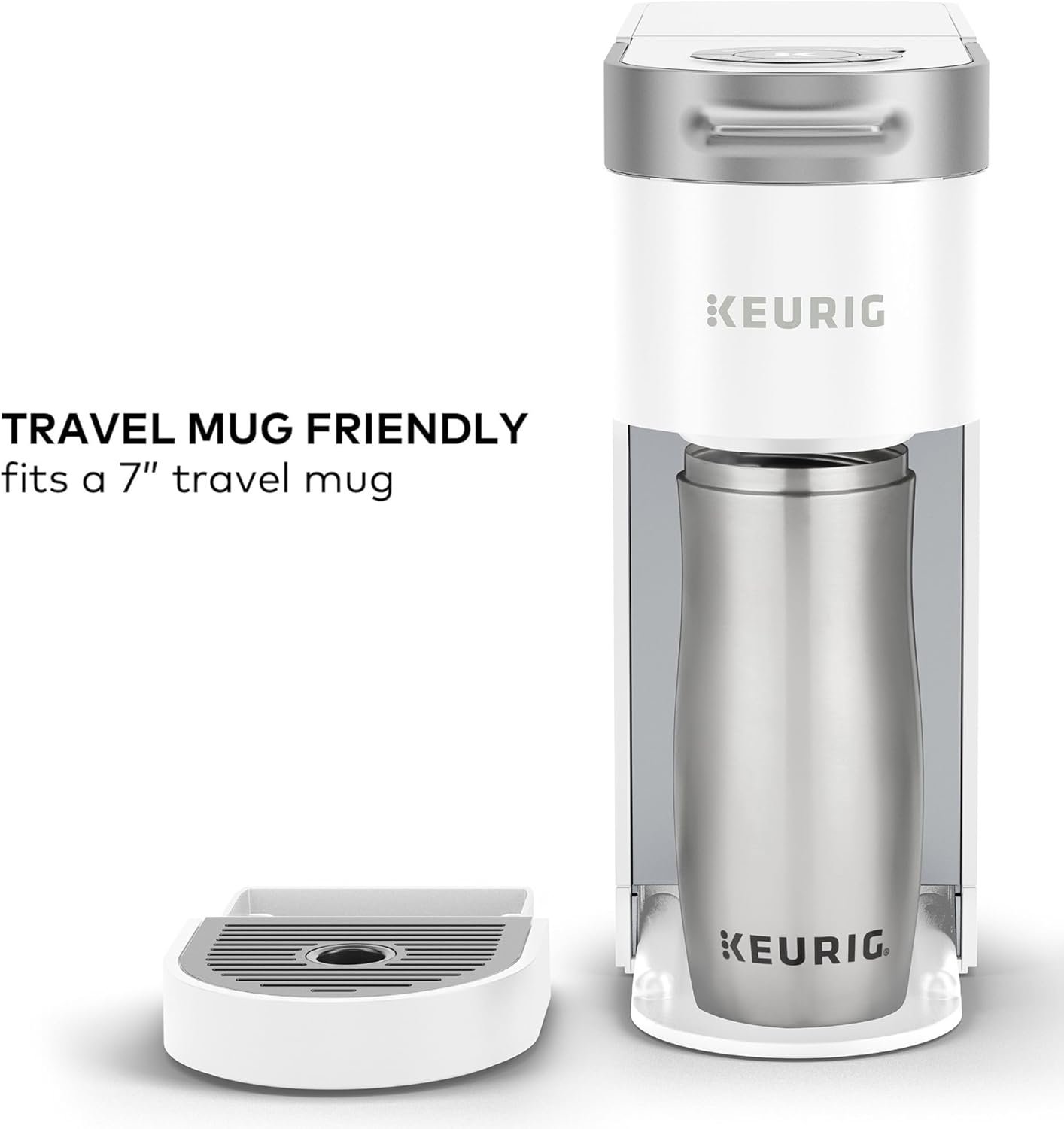 • Travel Mug Friendly: The machine accommodates tall mugs thanks to a removable drip tray, which can fit travel mugs up to 7.0” tall. This feature is a must-have for commuters and those who prefer to take their coffee on the go. The drip tray also handily holds a full accidental brew, ensuring easy cleanup if you forget your mug.